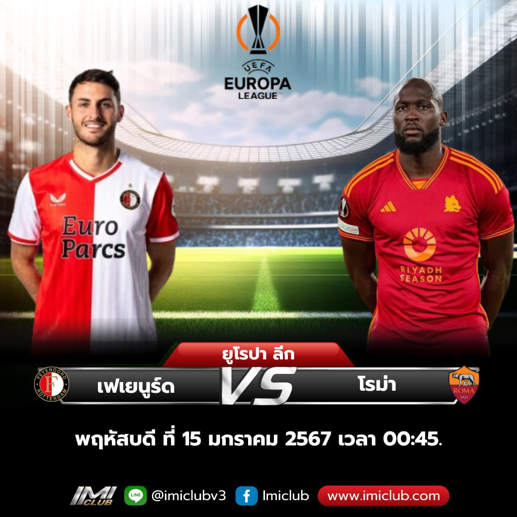 ปรีวิวฟุตบอล ยูฟ่า ยูโรป้า ลีค รอบตัดเชือก วันพฤหัสบดี ที่ 15 กุมภาพันธ์ 2567 เฟเยนูรด์ พบ โรม่า