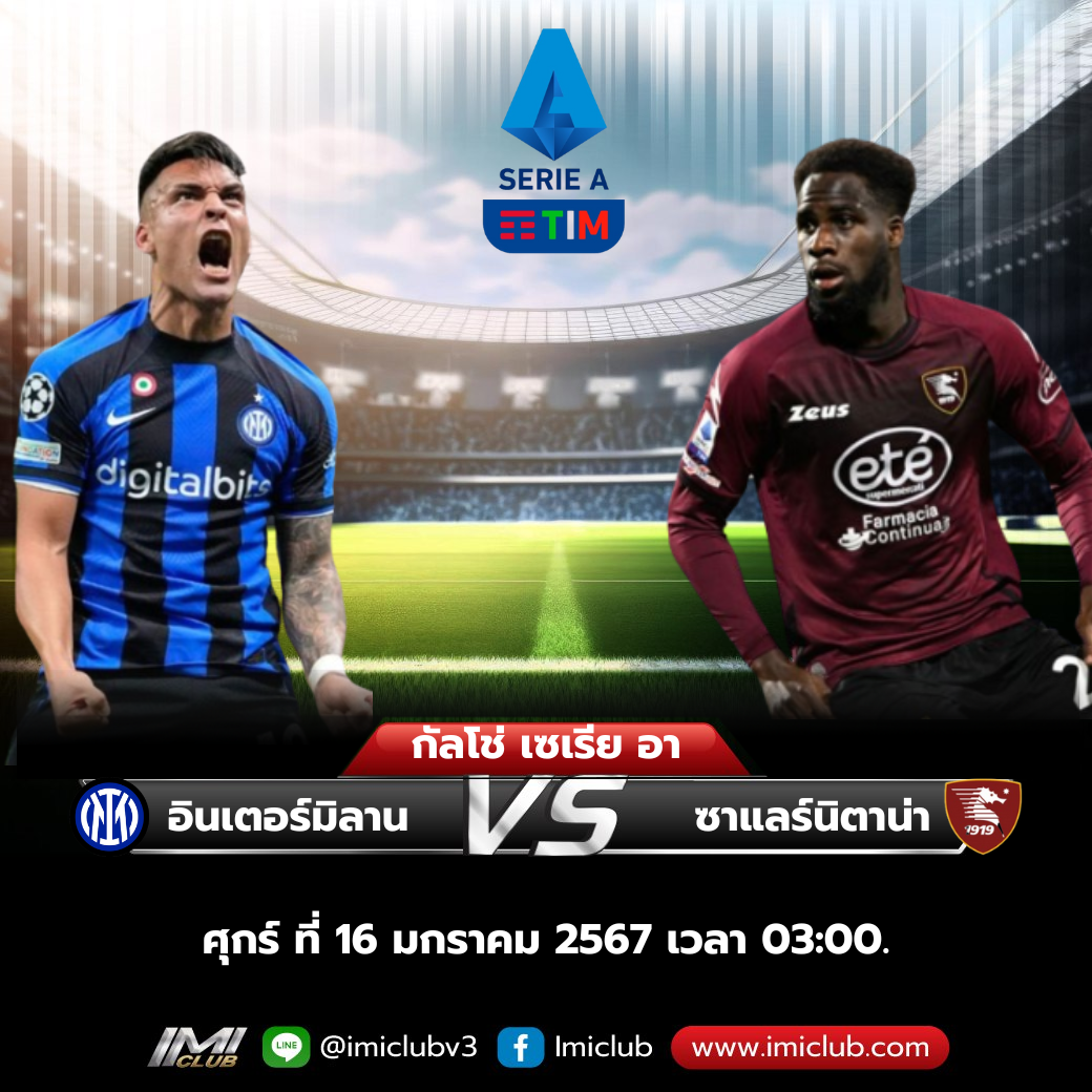 ปรีวิวฟุตบอล กัลโช่ ซีรีย์ อาร์ อิตาลี วันศุกร์ ที่ 16 กุมภาพันธ์ 2567 (1) อินเตอร์ มิลาน พบ ซาแลร์นิตาน่า (20)