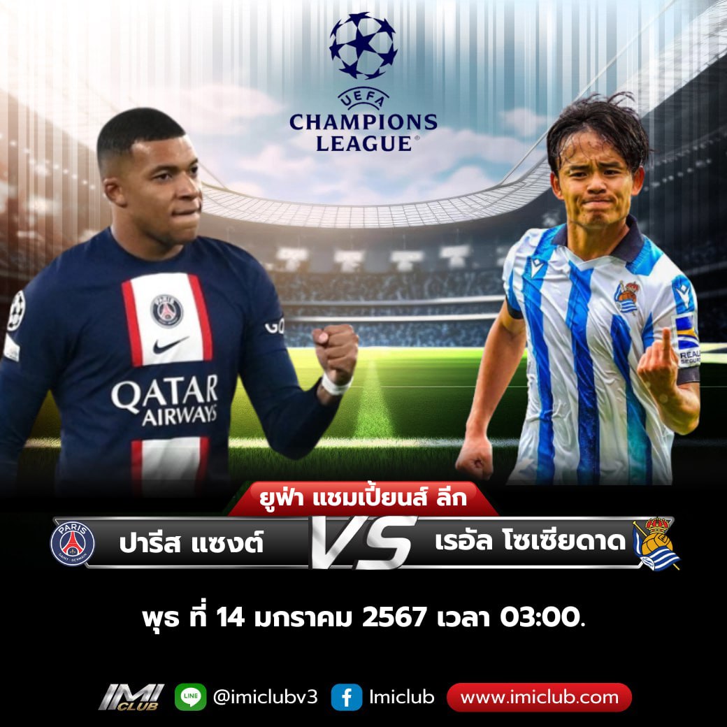 ปรีวิวฟุตบอล ยูฟ่า แชมป์เปี้ยน ลีค วันพุธ ที่ 14 กุมภาพันธ์ 2567 ปารีส แซง แชร์กแมง พบ เรอัล โซเซียดัด