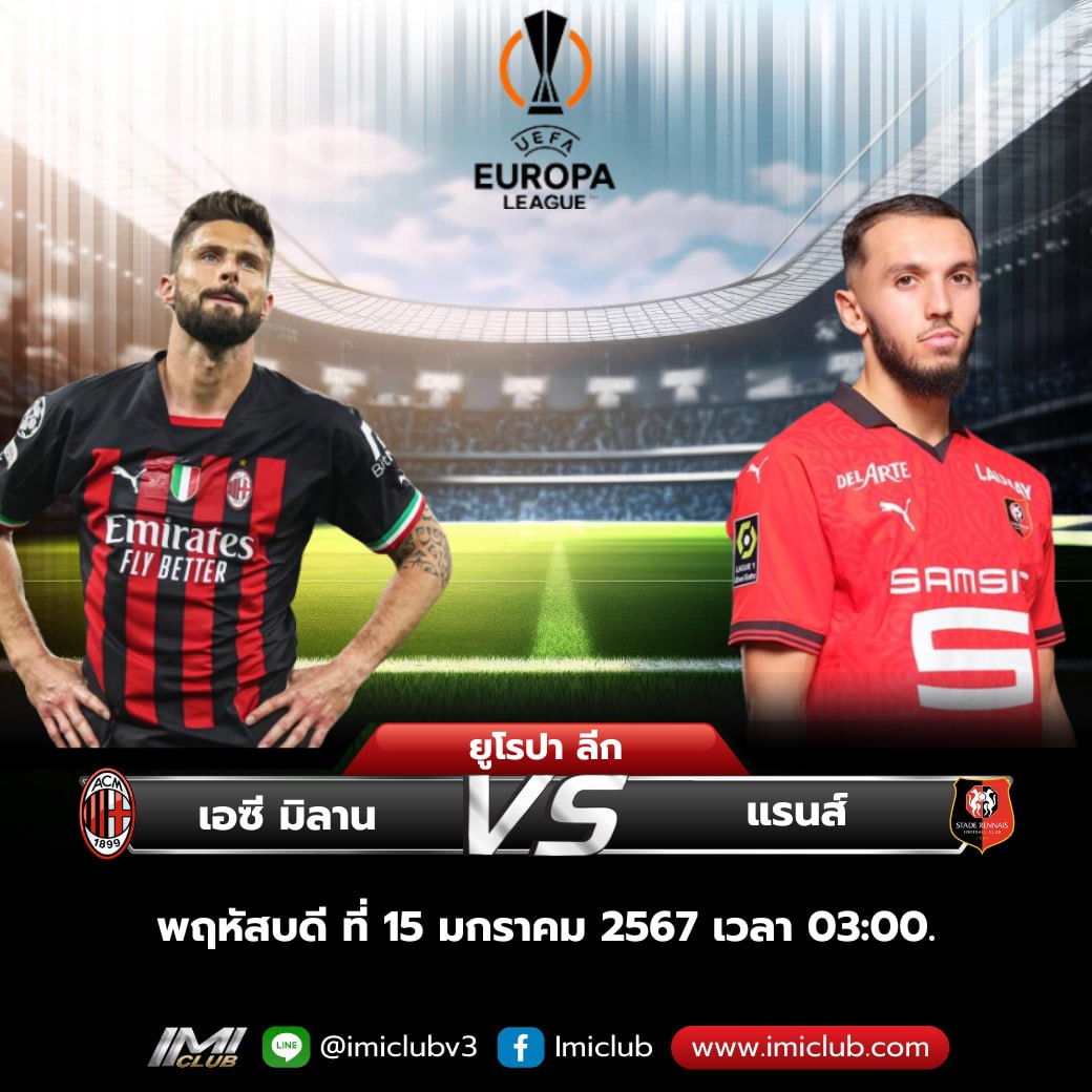 ปรีวิวฟุตบอล ยูฟ่า ยูโรป้า ลีค รอบตัดเชือก วันพฤหัสบดี ที่ 15 กุมภาพันธ์ 2567 เอซี มิลาน พบ แรนส์