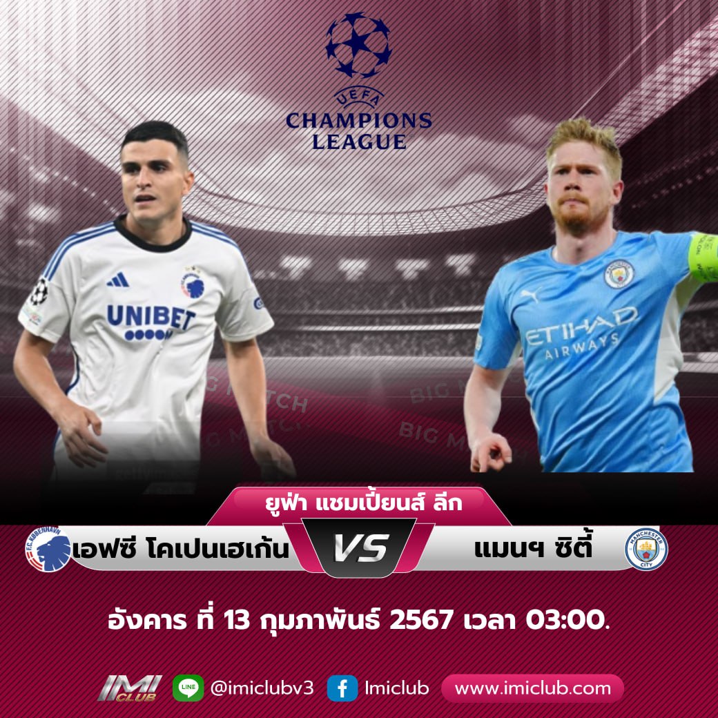 ปรีวิวฟุตบอล ยูฟ่าแชมป์เปี้ยน ลีค วันอังคาร ที่ 13 กุมภาพันธ์ 2567 โคเปนเฮเก้น พบ แมนฯ ซิตี้