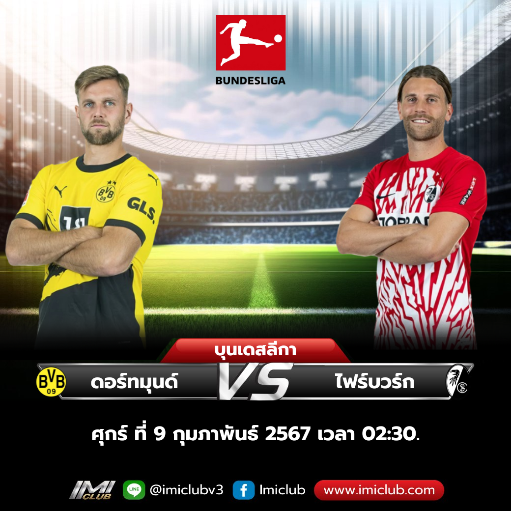 ปรีวิวฟุตบอล บุนเดสลีก้า เยอรมัน วันศุกร์ ที่ 9 กุมภาพันธ์ 2567 ดอร์ทมุนด์ พบ ไฟร์บวร์ก