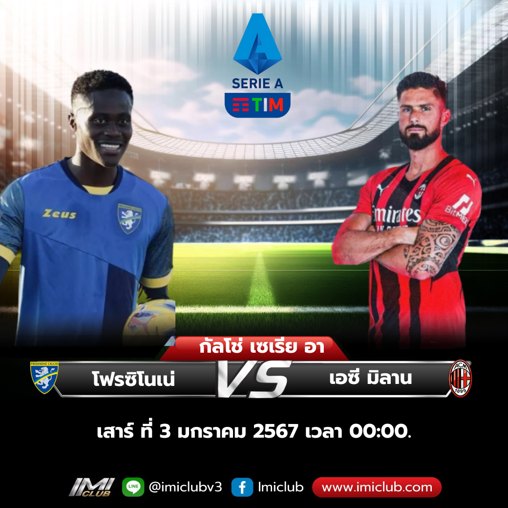 ปรีวิวฟุตบอล กัลโช่ ซีเรียอาร์ อิตาลี วันเสาร์ ที่ 3 กุมภาพันธ์ 2567 (13) โฟรซิโนเน่ พบ เอซี มิลาน (3)