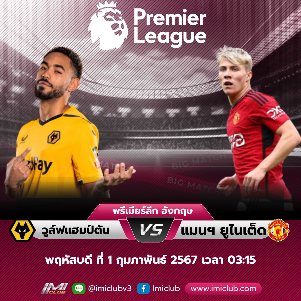 ปรีวิวฟุตบอล พรีเมียร์ ลีค อังกฤษ วันพุฤหัสบดี ที่ 1 กุมภาพันธ์ 2567 (11) วูลฟ์แฮมตัน พบ แมนฯ ยูไนเต็ด (8)