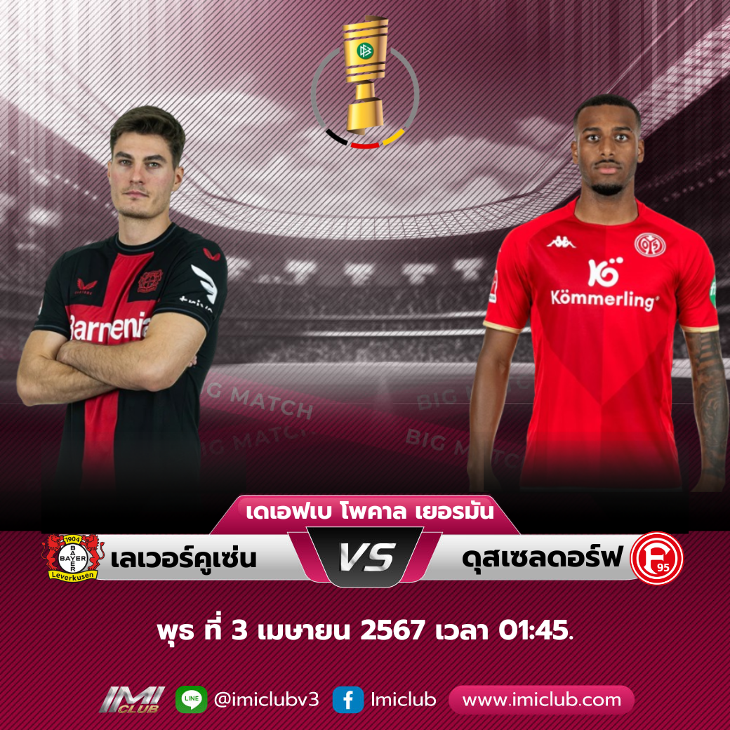 ปรีวิวฟุตบอล เยอรมัน คัพ วันพุธ ที่ 3 เมษายน 2567 เลเวอร์คูเซ่น พบ ฟอร์ทูน่า ดุสเซดอฟ
