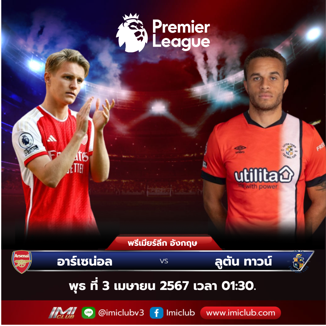 ปรีวิวฟุตบอล พรีเมียร์ ลีค อังกฤษ วันพุธ ที่ 3 เมษายน 2567 (1) อาร์เซน่อล พบ ลูตัน ทาวน์ (17)