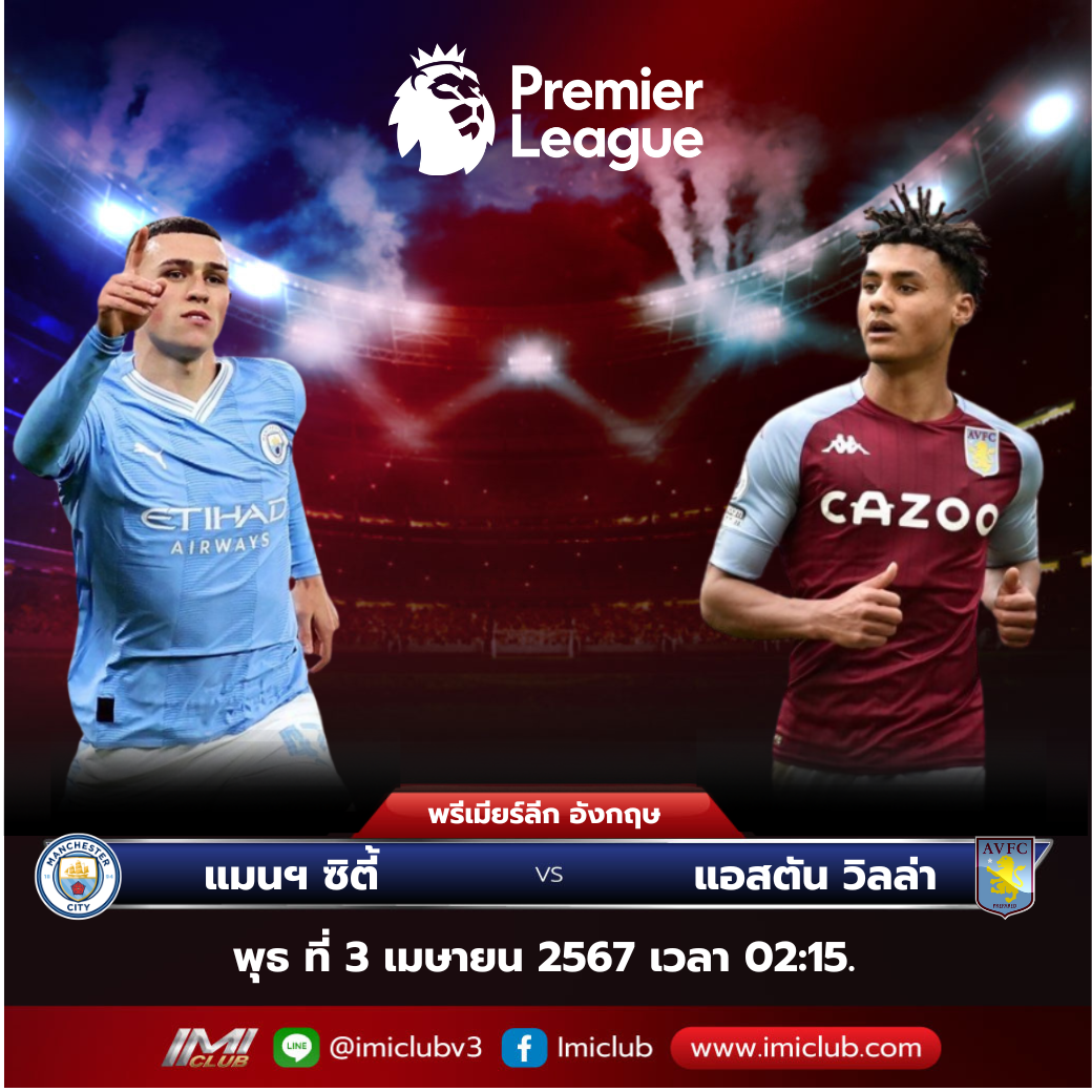 ปรีวิวฟุตบอล พรีเมียร์ ลีค อังกฤษ วันพุธ ที่ 3 เมษายน 2567 (3) แมนฯ ซิตี้ พบ แอสตัน วิลล่า (4)