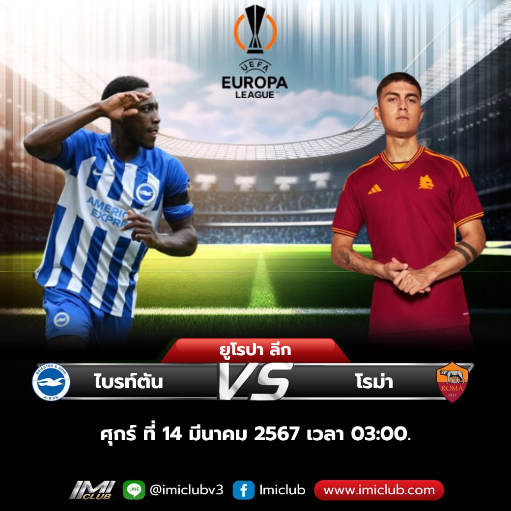 ปรีวิวฟุตบอล ยูฟ่า ยูโรป้า ลีค วันพฤหัสบดี ที่ 14 มีนาคม 2567 ไบร์ทตัน พบ โรม่า