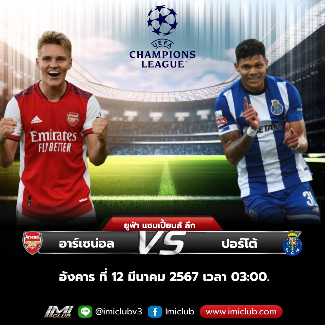ปรีวิวฟุตบอล ยูฟ่า แชมป์เปี้ยน ลีค วันอังคาร ที่ 12 มีนาคม 2567 อาร์เซน่อล พบ ปอร์โต้