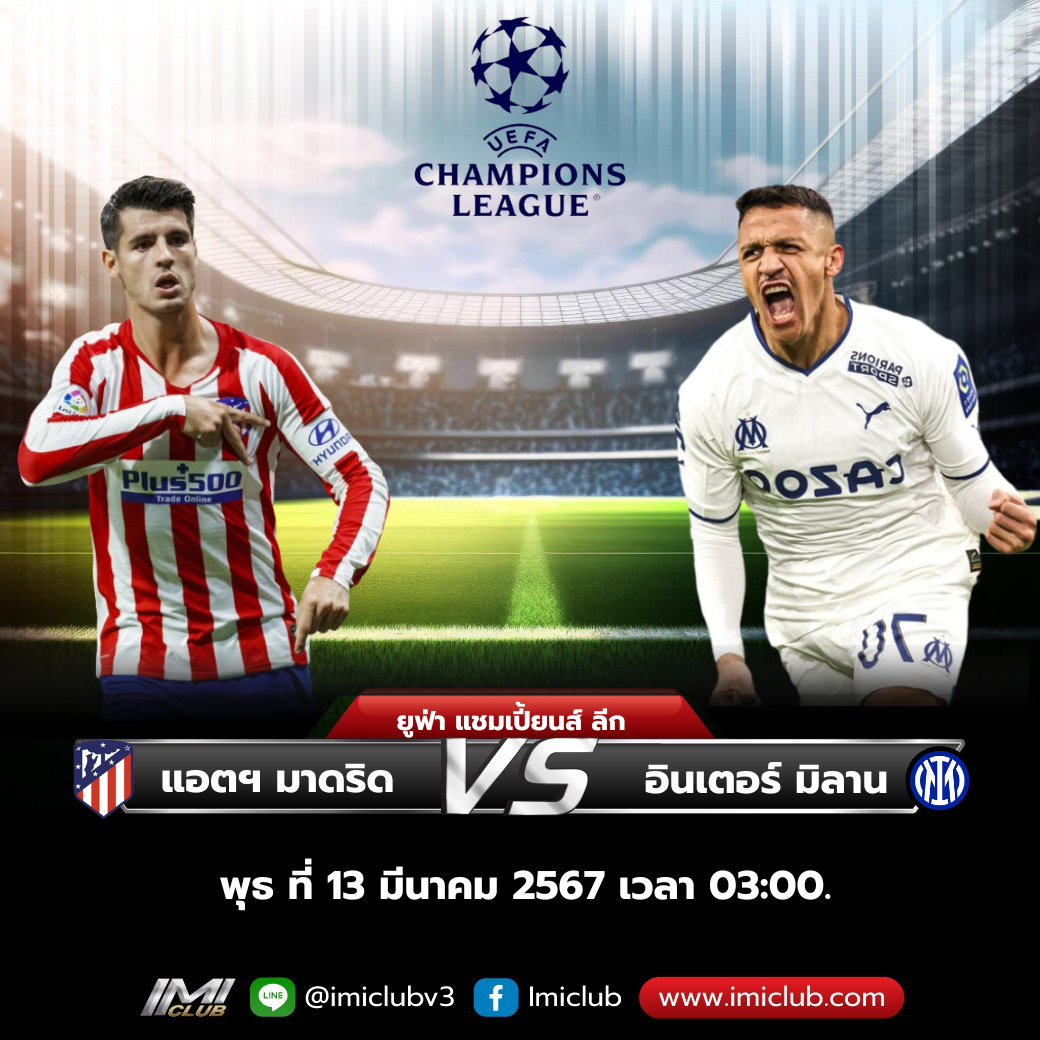 ปรีวิวฟุตบอล ยูฟ่า แชมป์เปี้ยน ลีค วันอังกฤษ ที่พุธ 13 มีนาคม 2567 แอตฯ มาดริด พบ อินเตอร์ มิลาน