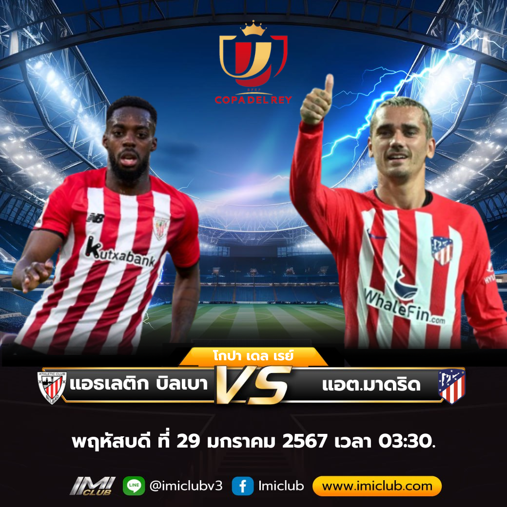 ปรีวิวฟุตบอล โคปาเดล เรย์ สเปน รอบรองชนะเลิศ วันพฤหัสบดี ที่ 29 กุมภาพันธ์ 2567 แอธฯ บิลเบา พบ แอตฯ มาดริด