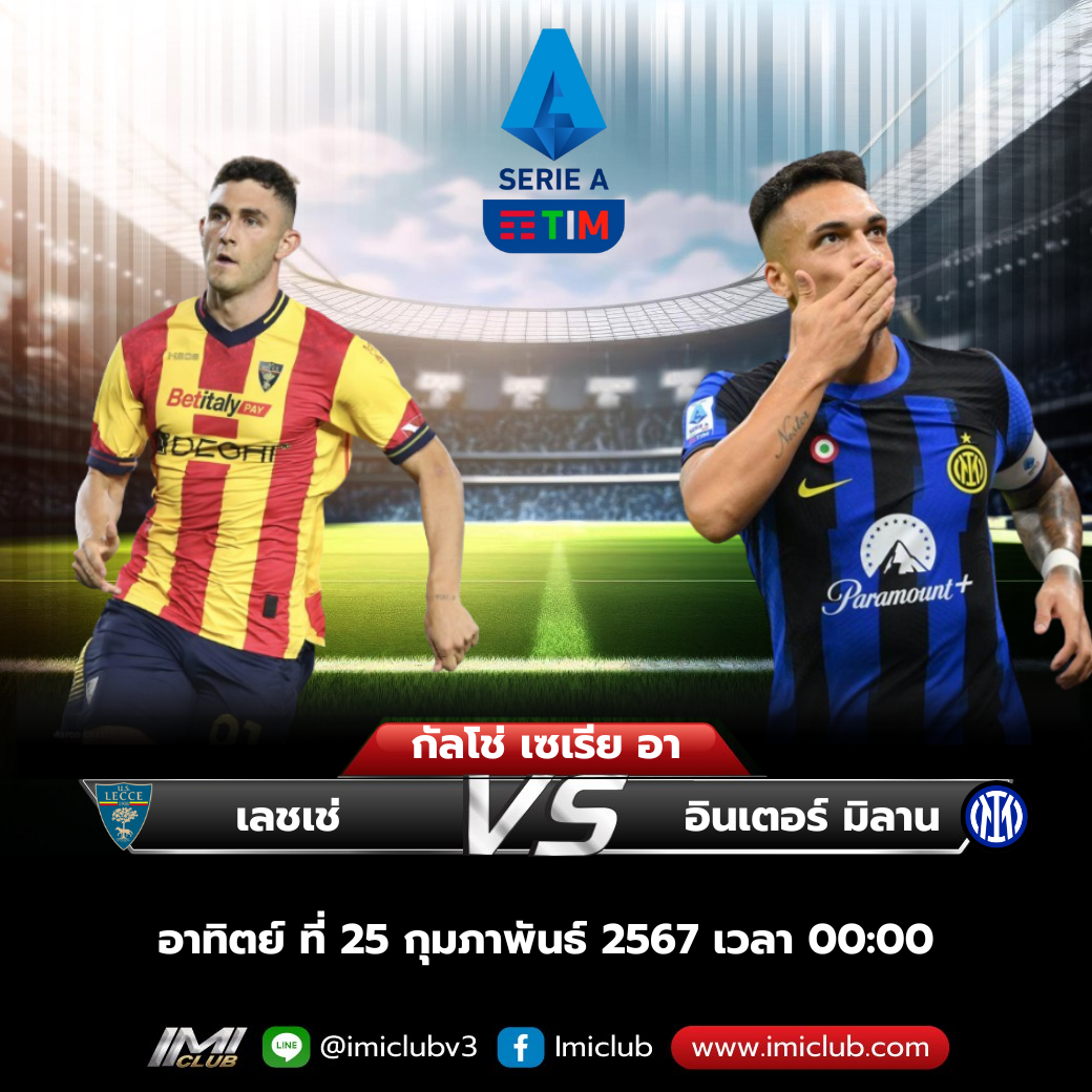 ปรีวิวฟุตบอล กัลโช่ ซีรีย์ อาร์ อิตาลี วันอาทิตย์ที่ 25 กุมภาพันธ์ 2567 เลชเช่ พบ อินเตอร์ มิลาน