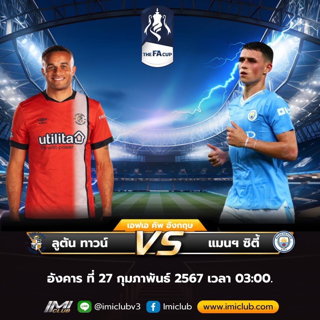 ปรีวิวฟุตบอล เอฟ เอ คัพ อังกฤษ วันอังคารที่ 27 กุมภาพันธ์ 2567 ลูตัน ทาวน์ พบ แมนฯ ซิตี้