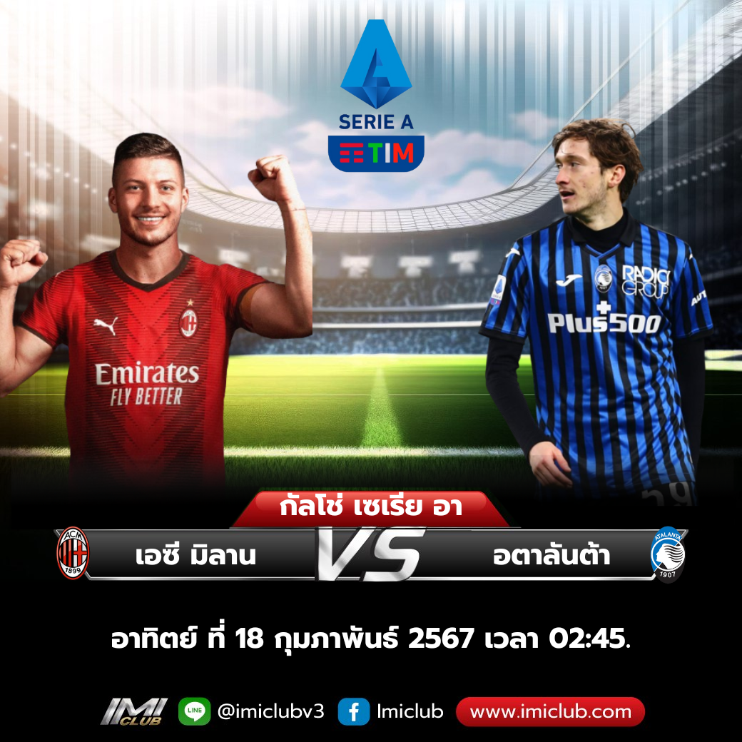ปรีวิวฟุตบอล กัลโช ซีรีย์ อาร์ อิตาลี วันอาทิตย์ ที่ 25 กุมภาพันธ์ 2567 เอซี มิลาน พบ อตาลันต้า