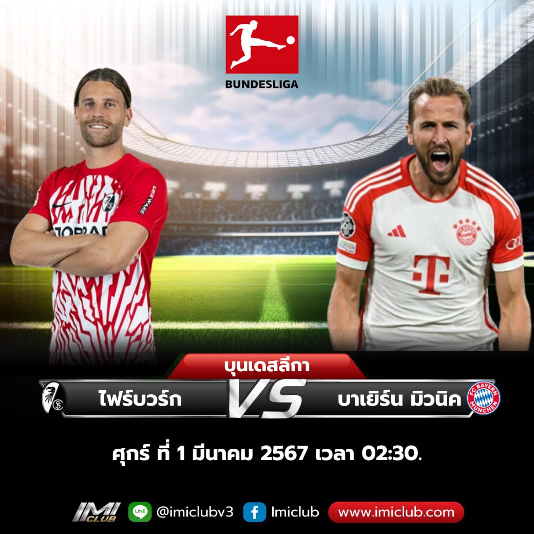 ปรีวิวฟุตบอล บุนเดส ลีก้า เยอรมัน วันศุกร์ ที่ 1 มีนาคม 2567 ไฟร์บวร์ก พบ บาร์เยิร์น มิวนิค