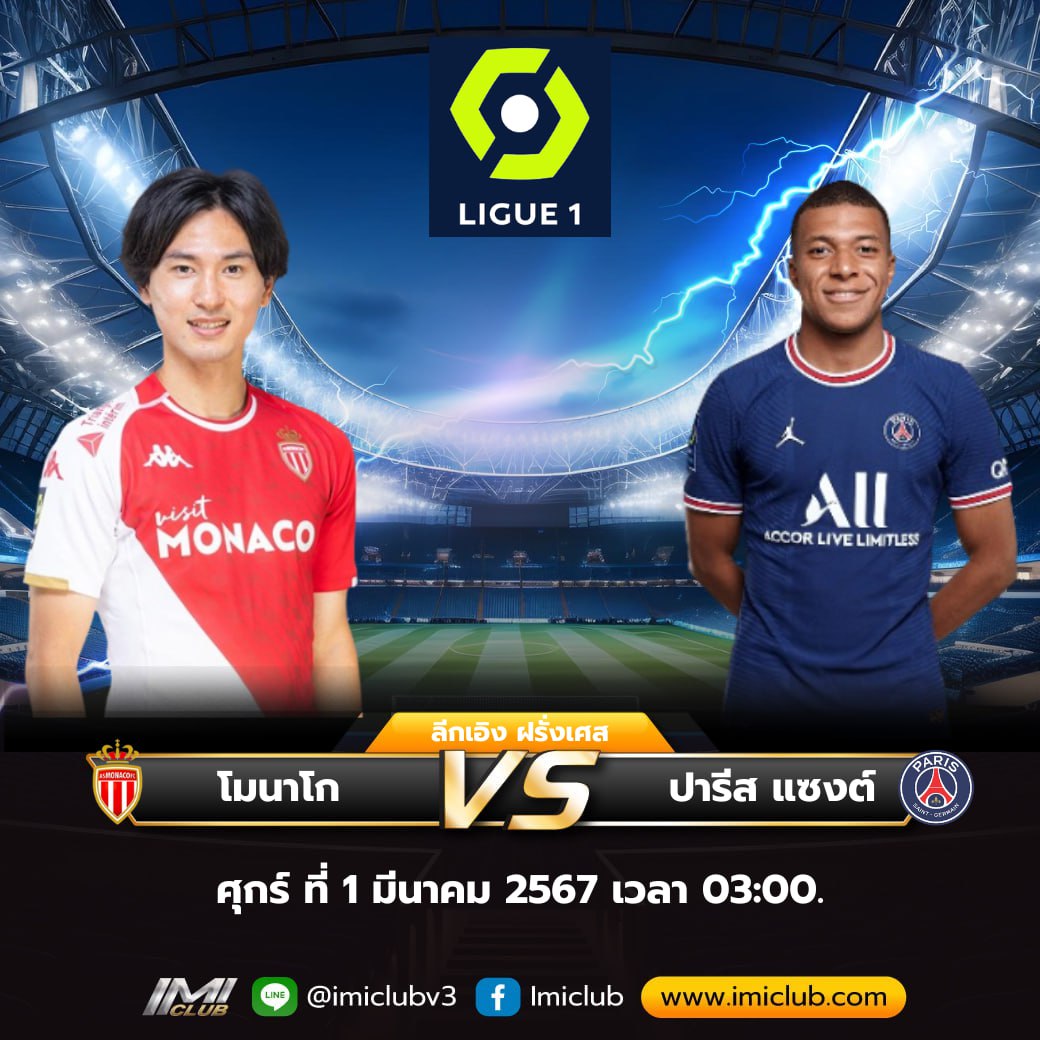ปรีวิวฟุตบอล ลีค เอิง ฝรั่งเศส วันศุกร์ ที่ 1 มีนาคม 2567 โมนาโก พบ ปารีส แซง แชร์กแมง