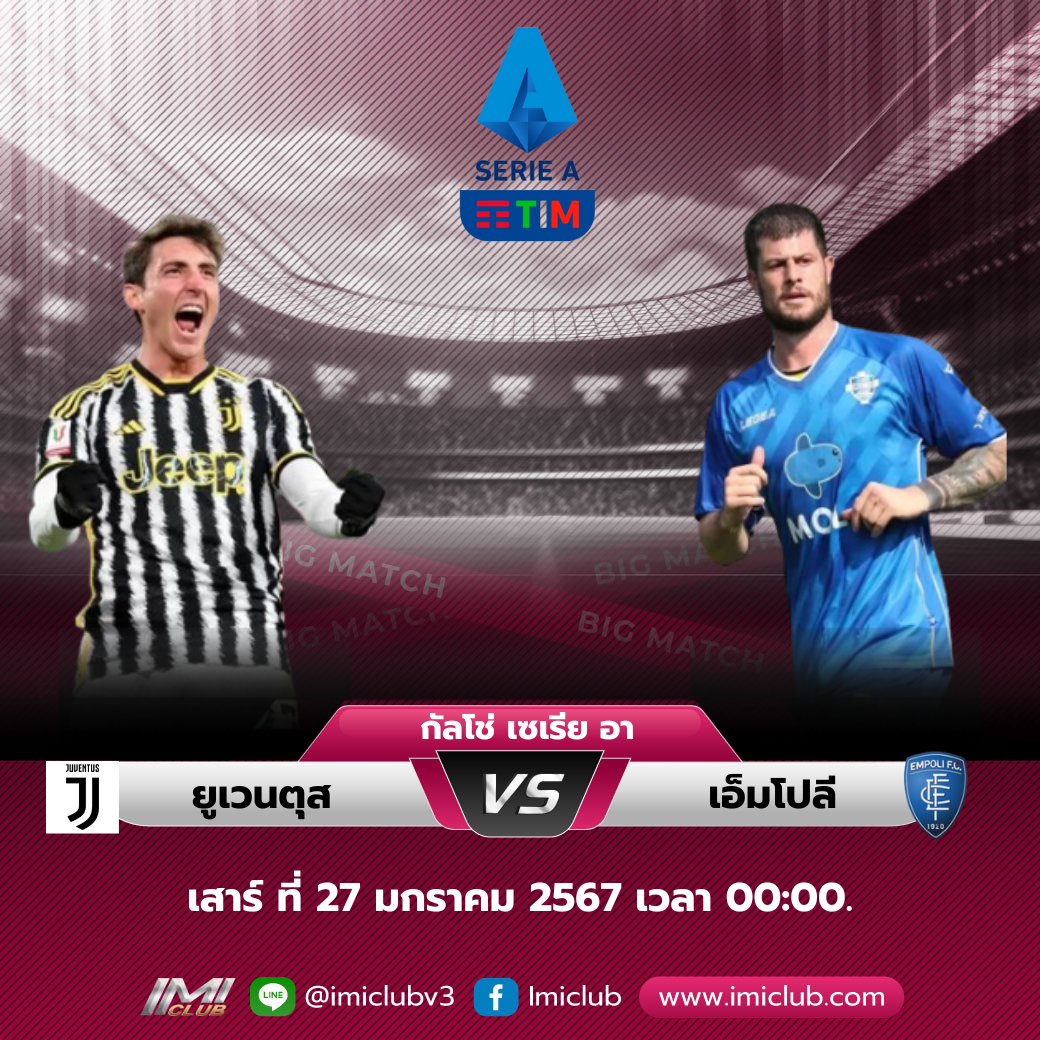 ปรีวิวฟุตบอล กัลโช่ ซีรีย์ อาร์ อิตาลี วันเสาร์ที่ 27 มกราคม 2567 (1) ยูเวนตุส พบ เอ็มโปลี (19
