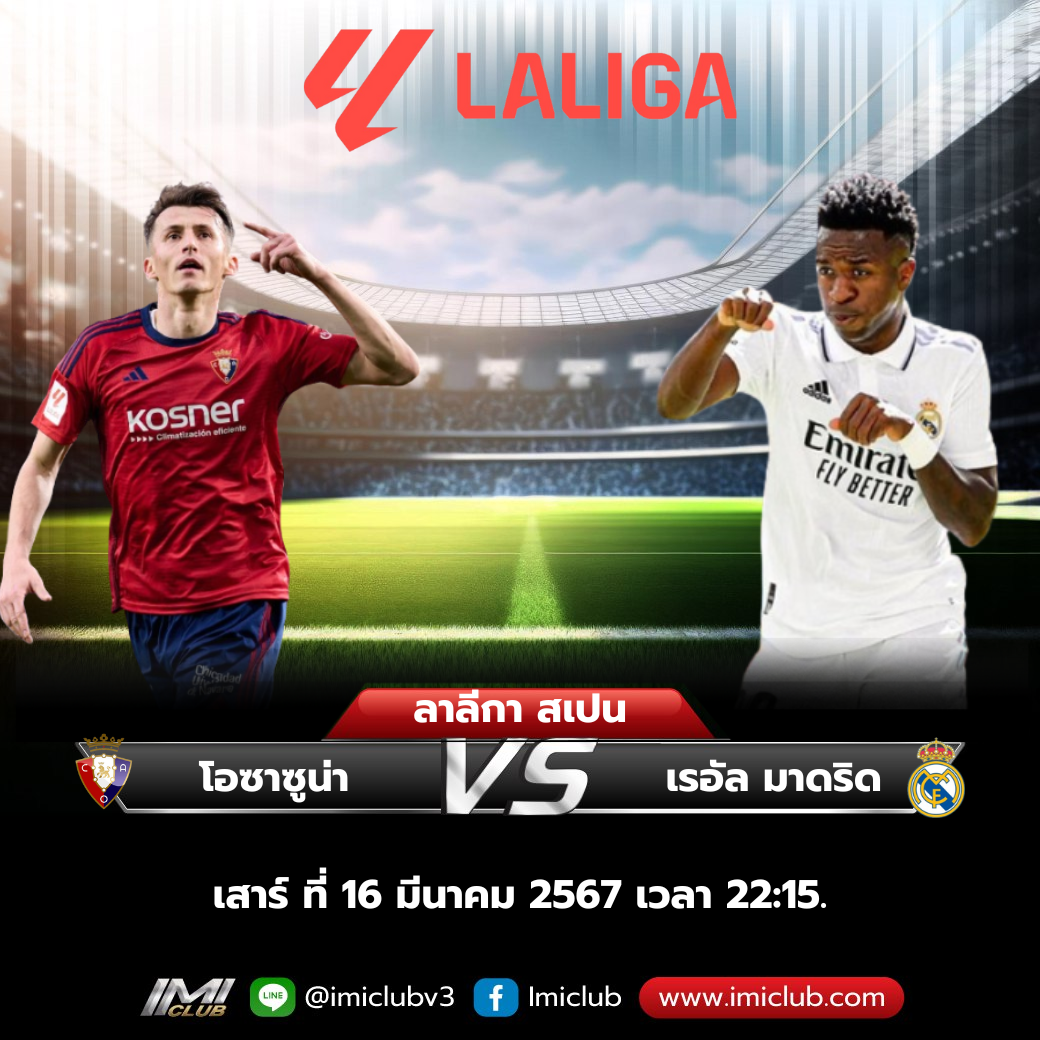 ปรีวิวฟุตบอล ลาลีก้า สเปน วันเสาร์ ที่ 16 มีนาคม 2567 (10) โอซาซูน่า พบ เรอัล มาดริด (1)
