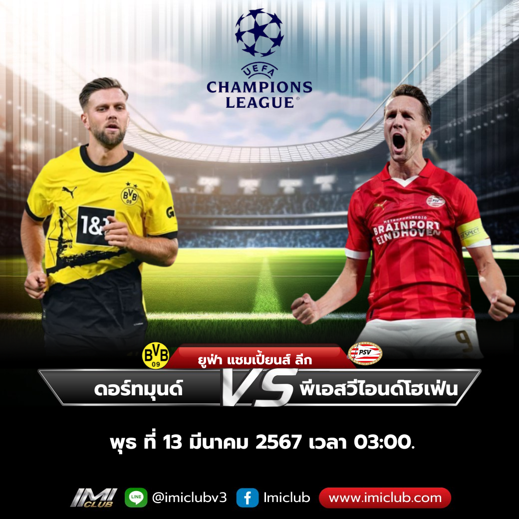 ปรีวิวฟุตบอล ยูฟ่า แชมป์เปี้ยน ลีค วันพุธ ที่ 13 มีนาคม 2567 ดอร์ทมุนด์ พบ พีเอสวี ไอน์ดโฮเฟ่น
