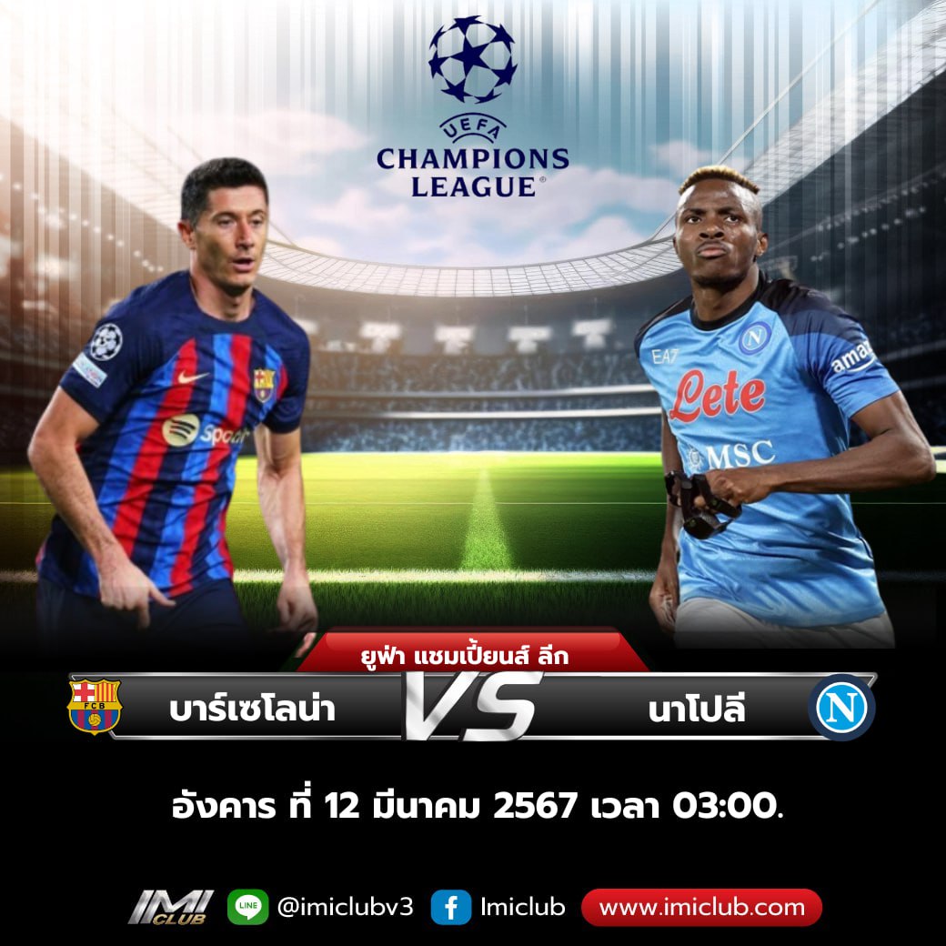 ปรีวิวฟุตบอล ยูฟ่า แชมป์เปี้ยน ลีค วันอังกฤษ ที่ 12 มีนาคม 2567 บาร์เซโลน่า พบ นาโปลี