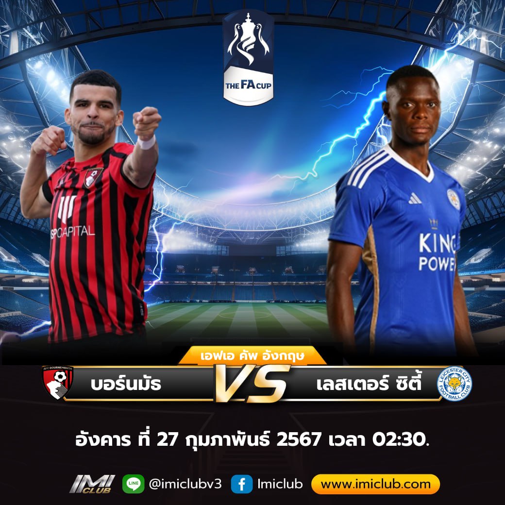 ปรีวิวฟุตบอล เอฟ เอ คัพ อังกฤษ วันอังคาร ที่ 27 กุมภาพันธ์ 2567 บอร์นมัธ VS เลสเตอร์ ซิตี้